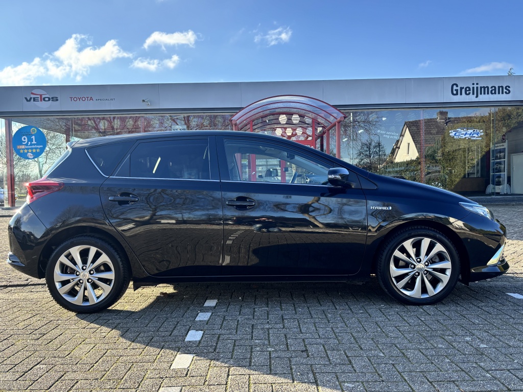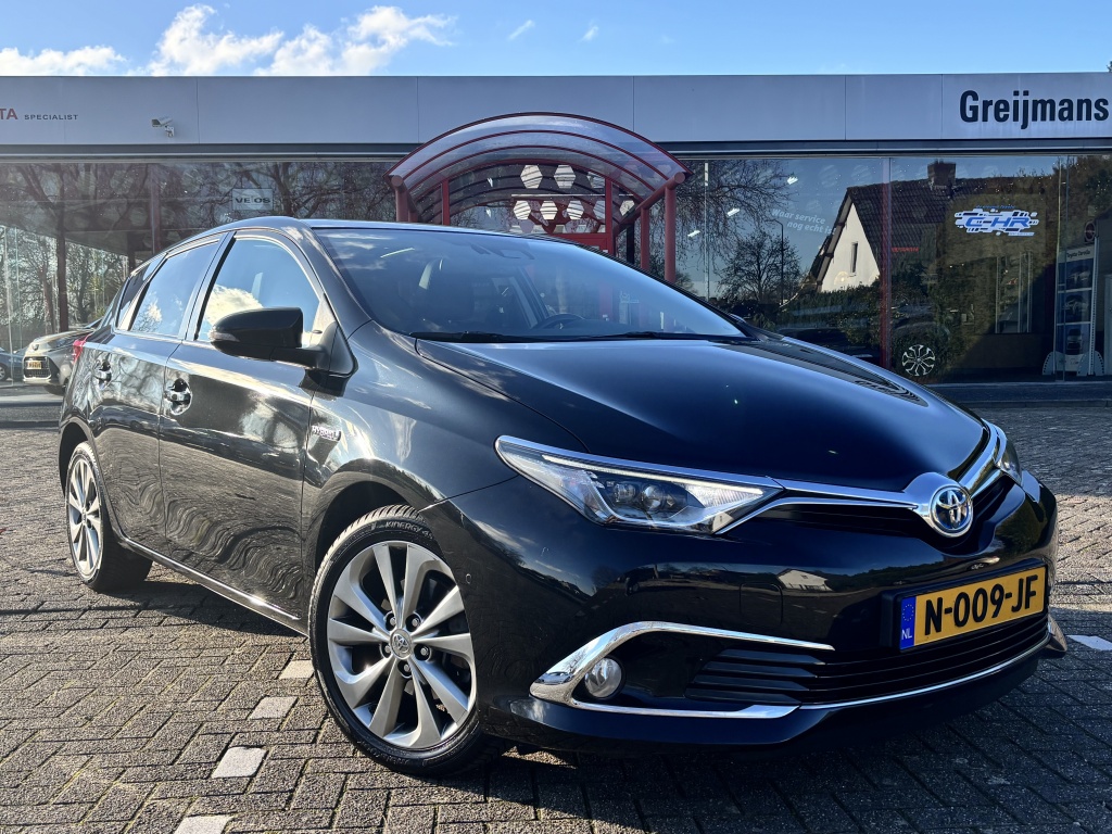 Zeer nette en luxe Toyota Auris 1.8 Hybrid Executive Automaat. Deze comfortabele en zuinige Toyota Auris is rijk uitgerust met onder meer: panoramadak, navigatie, achteruitrijcamera, cruise control, climate control, start-button, half lederen interieur, stoelverwarming, lane assist, elektrische inklapbare buitenspiegels, parkeersensoren en nog veel meer. De complete onderhoudshistorie is aanwezig, inclusief tellerrapport.